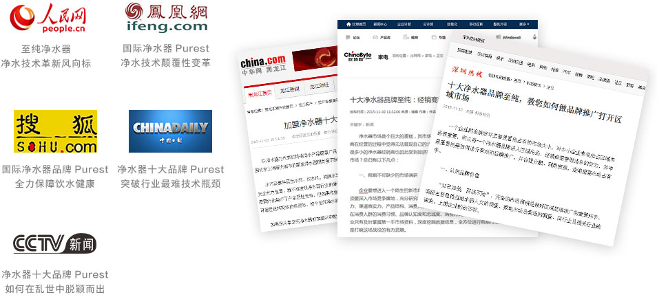 至純凈水器將常年投放廣告,機場、高速公路、電視臺及網絡媒體廣告投放。
